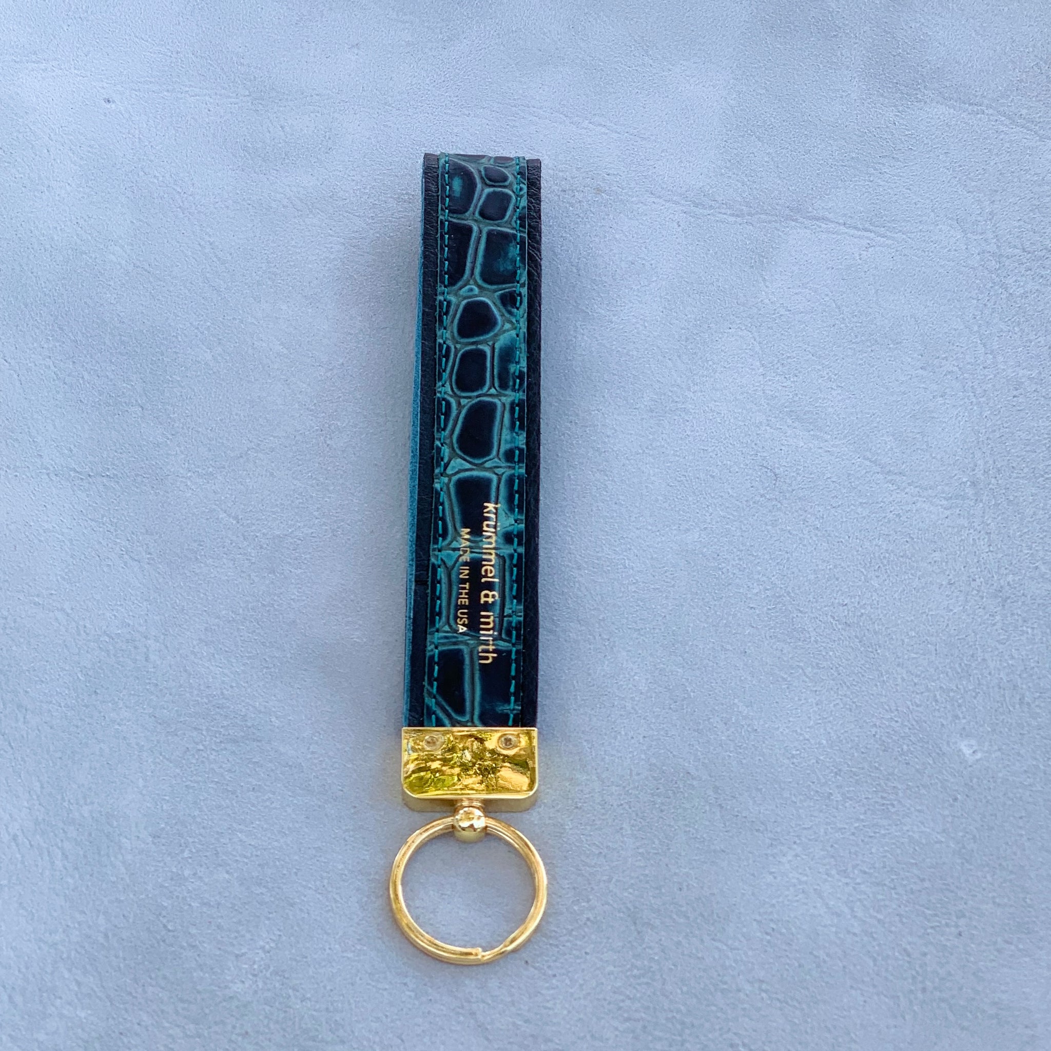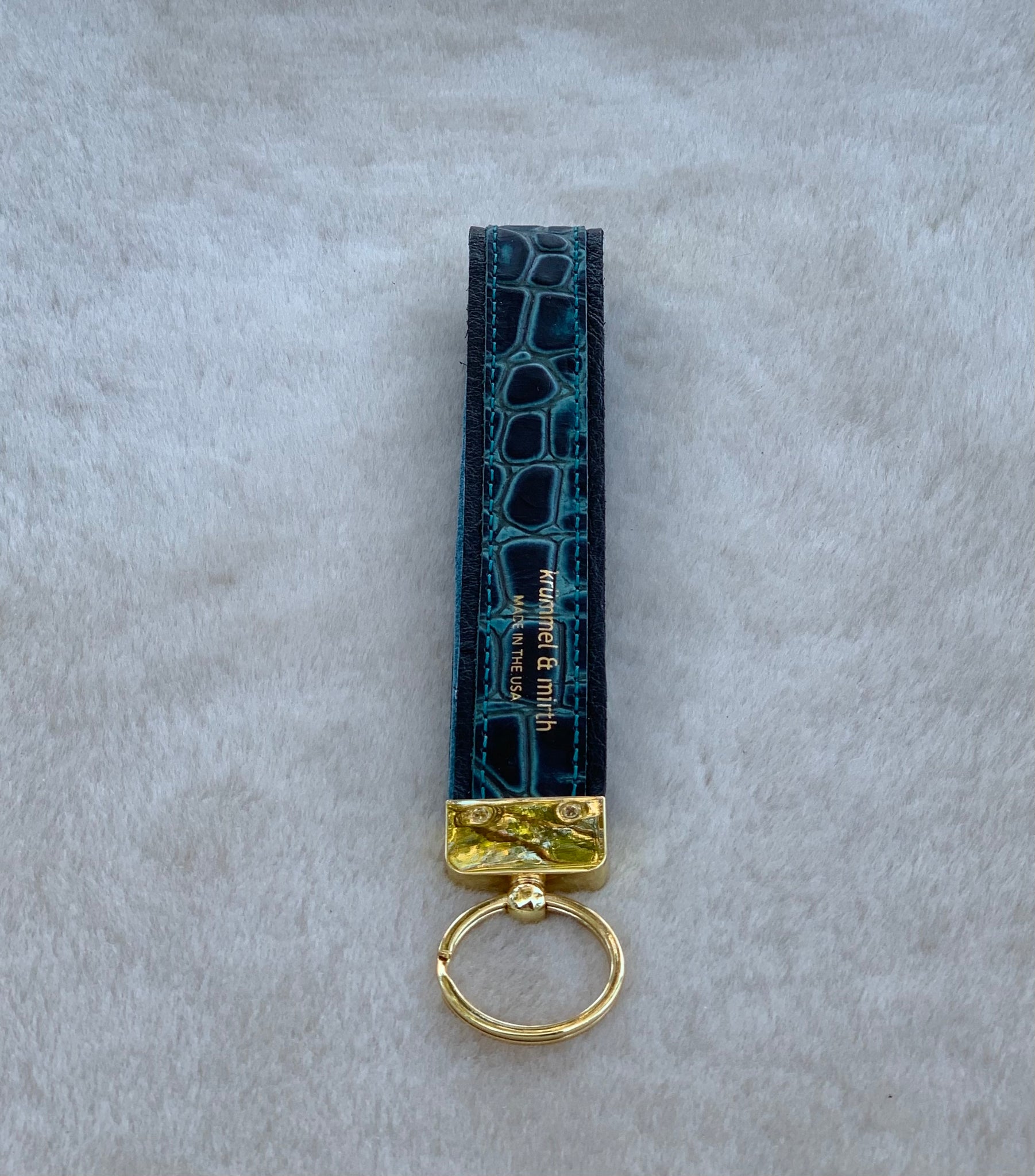 Handcrafted  by our talented artisans in California. Our 5.5” gorgeous Saint-Yves Wristlet Keychain Fobs are made  from our Ultra Fine Italian Croc line. A gorgeously embossed  and hand stained cow hide to give a two tone real croc effect. Total luxury!