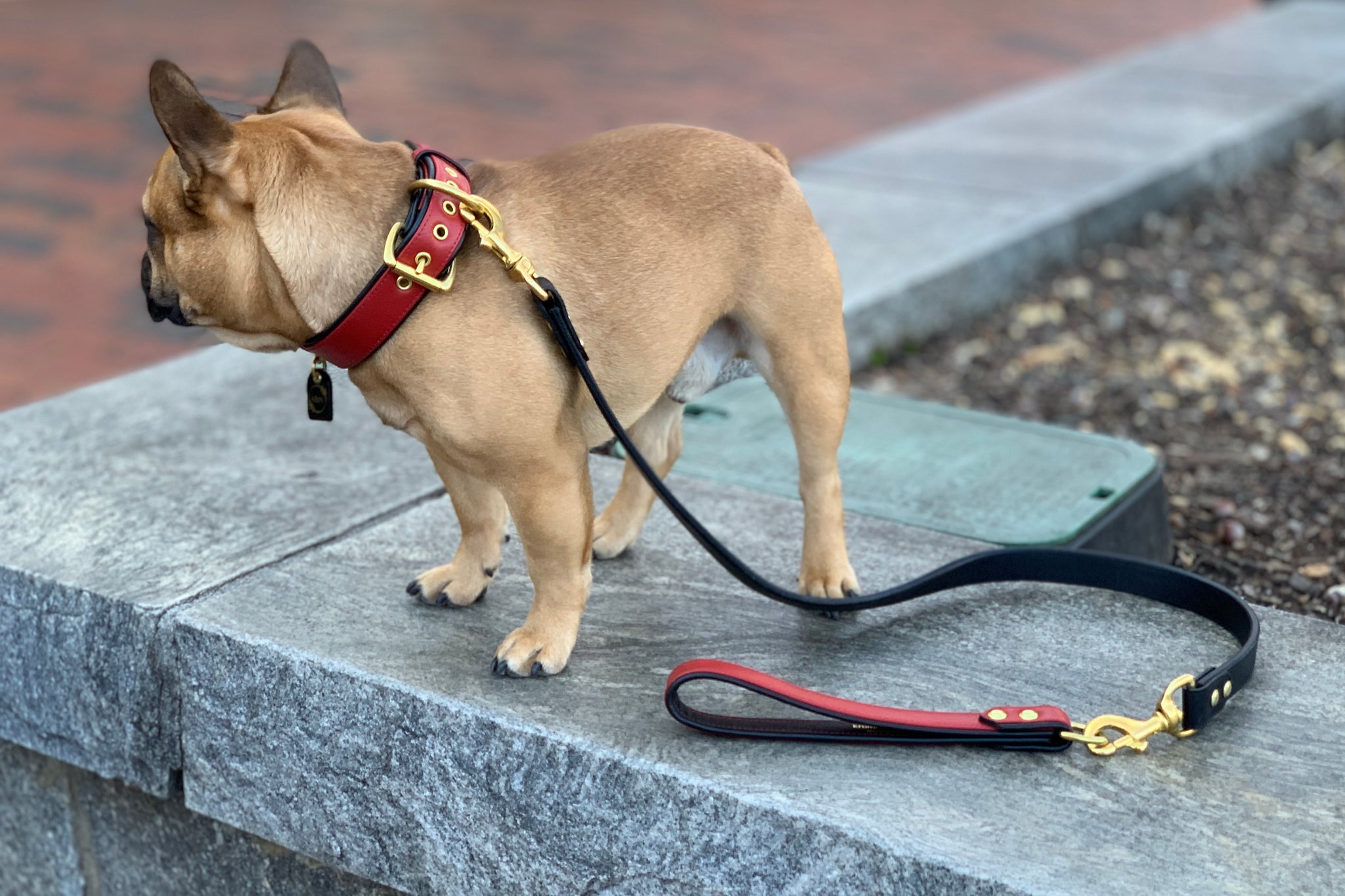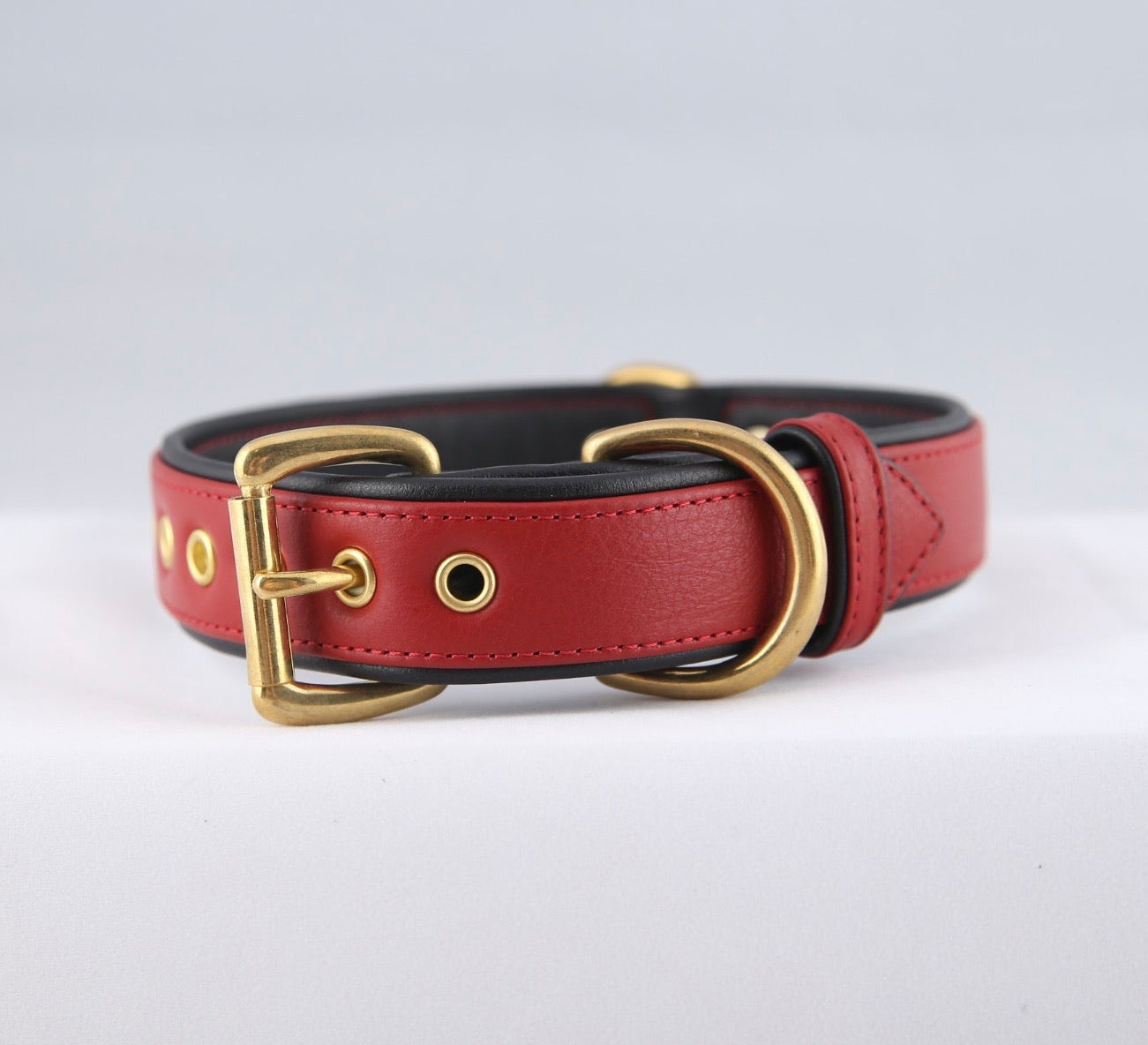 “The Athens” a beautifully elegant Crimson red and Midnight black genuine top grain leather collar makes this a “Top Dog” Collar for sure!