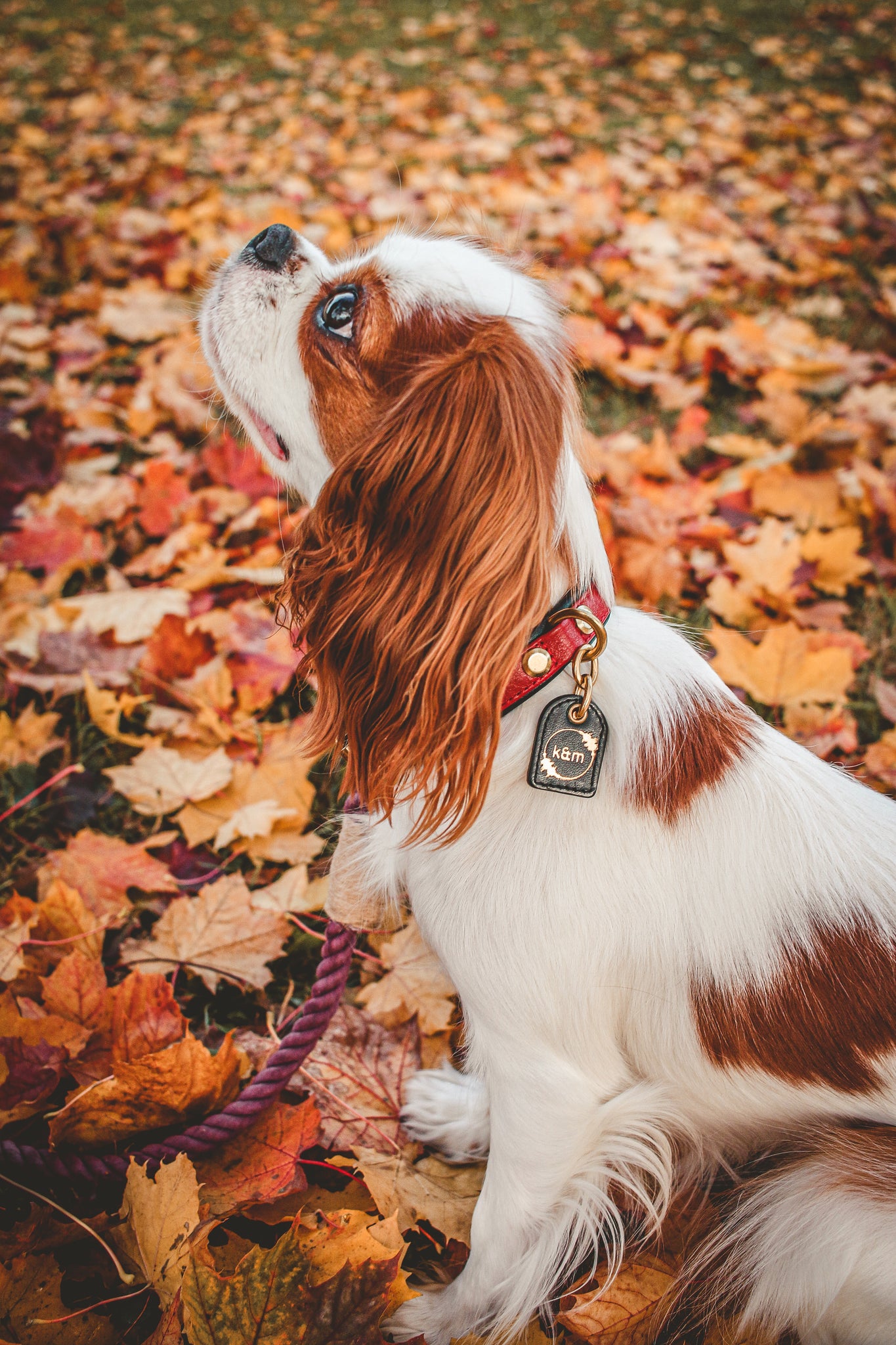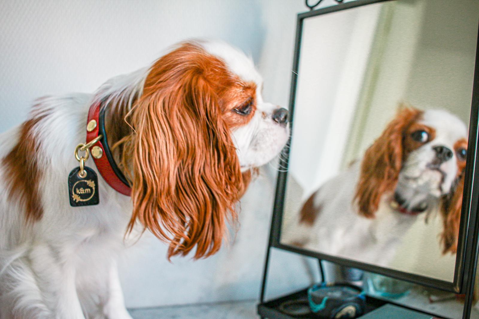 Each k&m collar is specially designed to have the best of both worlds. Genuine leather features combined with solid brass hardware bring an elegant style that can't be beat. Two d-rings and double layer leather offer both function and a sleek edge. Our collars are enhanced with a sliding keeper to make sure that the tail of the collar stays in place no matter what hole your pet may wear their collar on. Each collar is adorned with a FOB of our meaningful logo; a dog's "mirthful" bark. krümmel & mirth collars are designed and crafted in the USA.