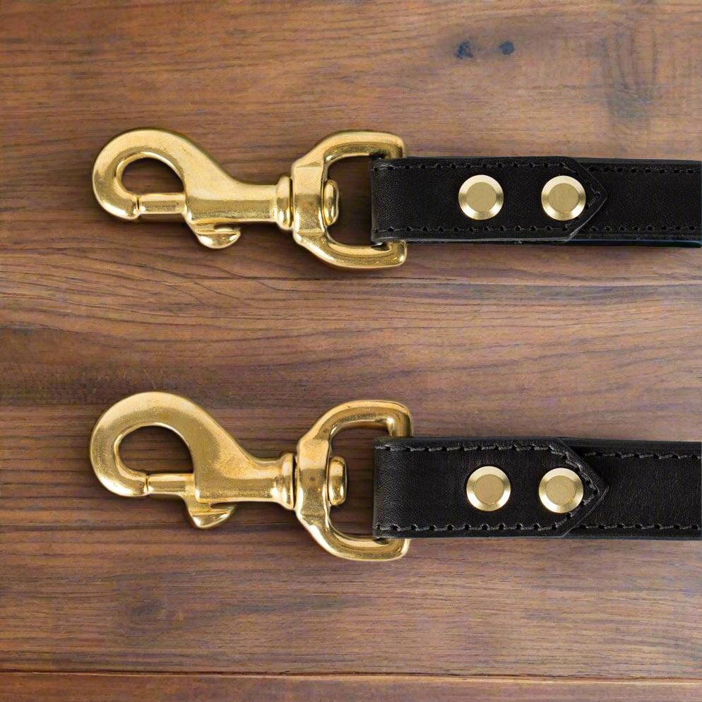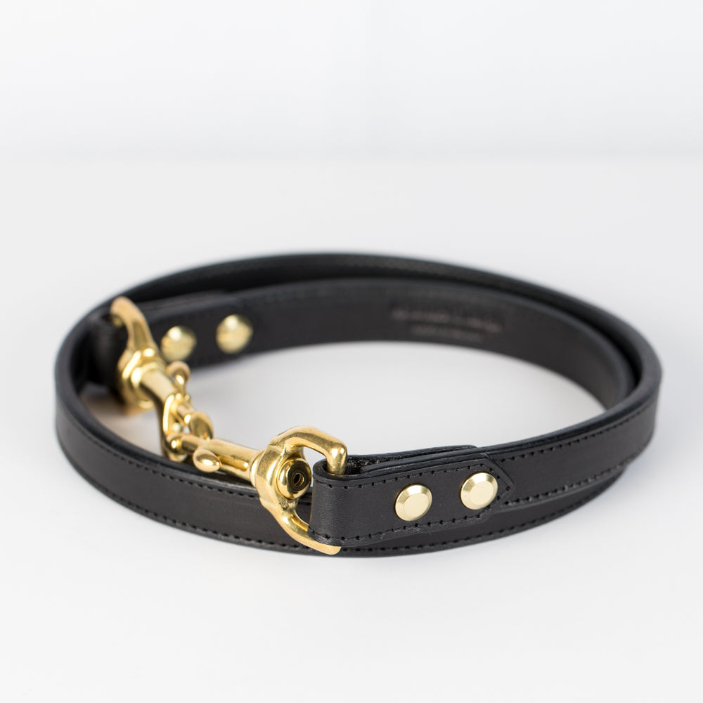 Double layer English bridle leather makes this lead worthy of the tiniest pup or the biggest beast. Combined with our grip you will have the choice of  24”, 48" or 58" in total length. Our leads also offer a temporary traffic leash solution by removing the handle and doubling up the lead. Solid brass hardware adorn our leads to make them both stunning and durable.
