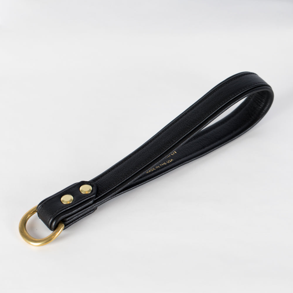 Crafted from supple, double-layered midnight black leather, the body of each grip is accented with lustrous brass for an elegant finish.